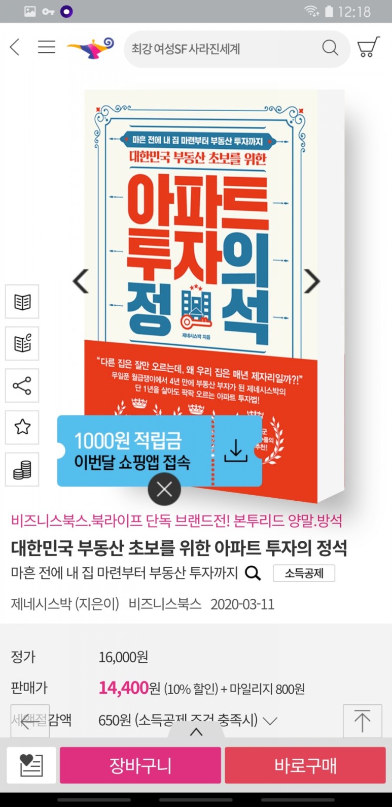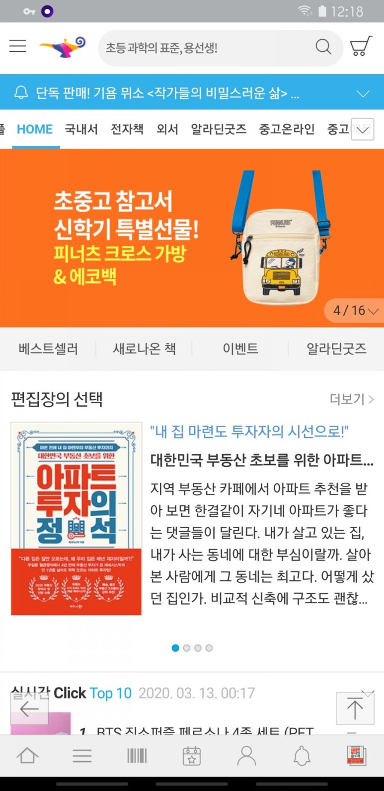 먼져 알라딘 어플을 접속하고 편집장 추천 도서 아무거나 클릭합니다