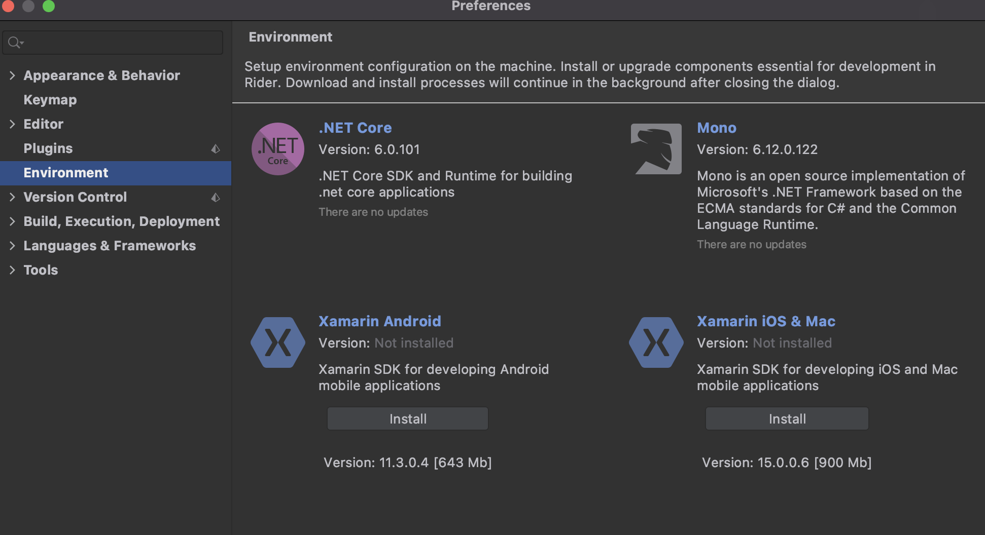 Environmoent -> .NET Core와 Mono를 설치해 주면 정상적으로 작동한다